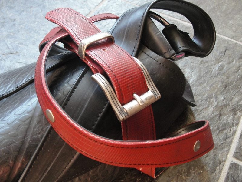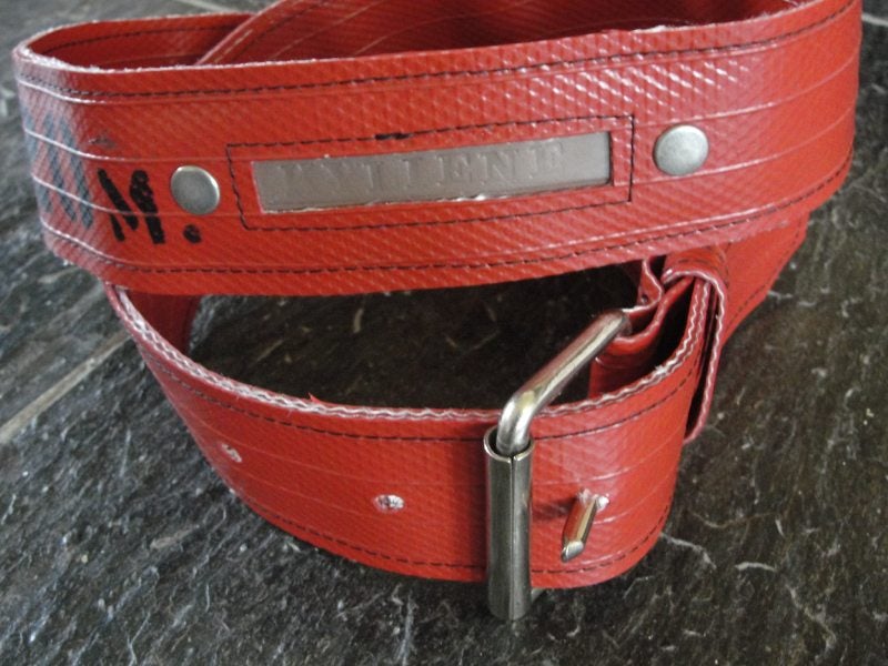 Deze riem is gemaakt van brandweerslang, heeft mooie zwarte opdruk en studs €39,95