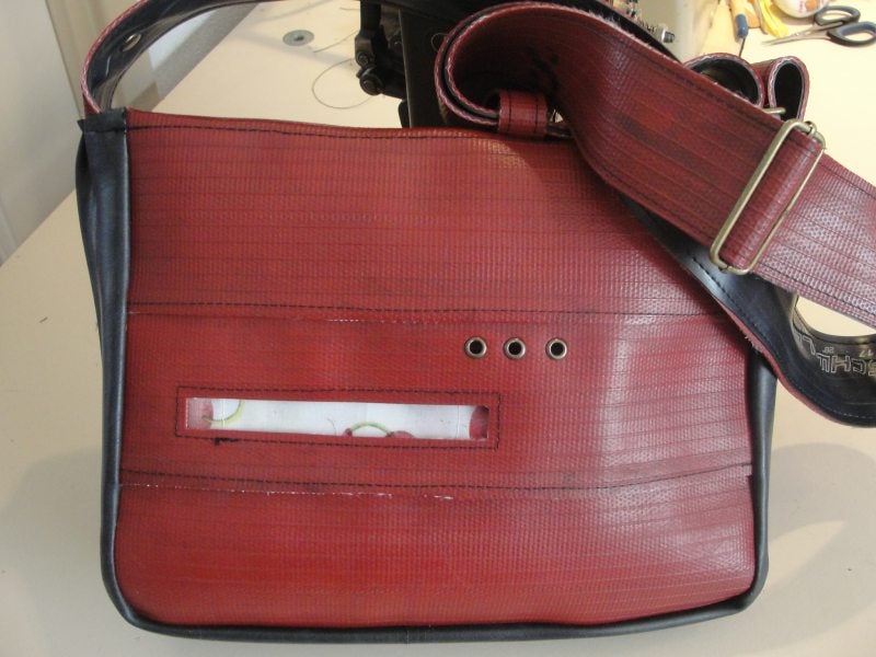 Tas van brandweerslang,en fietsenbinnenband, €85,00