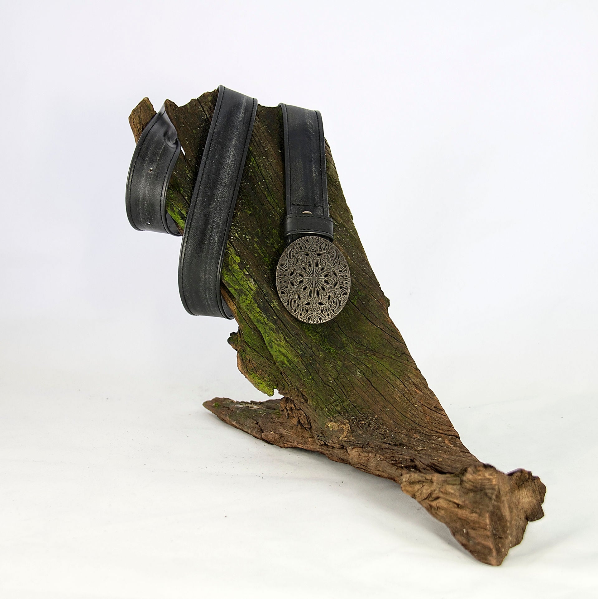 Deze centuur heeft als gesp een tandwiel,en ventiel,bestaat uit 2 stukken,op maat aan te passen.