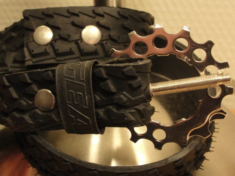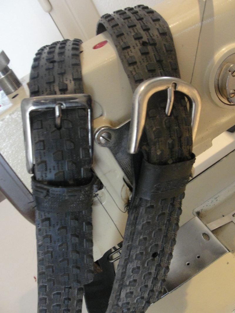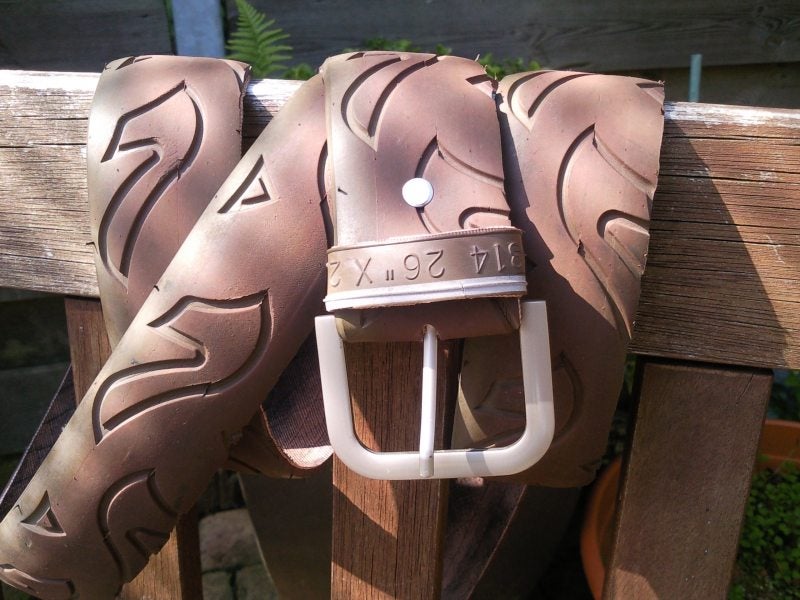 Centuur's van buitenbanden van fiets,met iedere keer weer een andere gesp,ook op maat te maken.