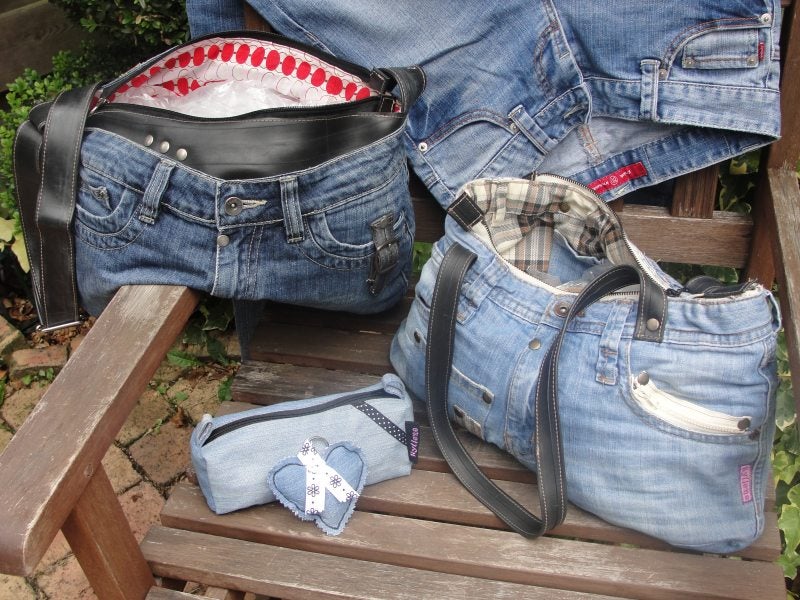 Tassen gemaakt van oude Jeans deze tassen en nog vele andere exemplaren zijn er voor €49.95 en €39.95